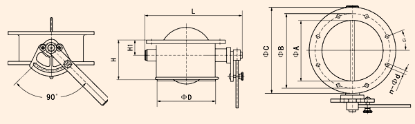 注:蝶閥的高度及法蘭尺寸也可根據用戶要求制作。